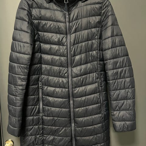 Myydään hyväkuntoinen toppatakki koko 38, ostettu Stockmannilta. Jäänyt vähäiselle käytölle, hihoissa vähän tummentumia. Takkia ei ole pesty. Takin pituus 83cm ja kainalo-kainalo mitta 54cm.