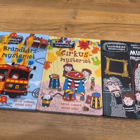 LasseMaja-böcker, i väldigt gott skick. I "Silvermysteriet" och "Zoomysteriet" står det namn i ("Denna bok tillhör: X".) 6€ för dem per styck, 7€ för de andra/styck. Eller 40€ för alla sju tillsammans. Finns att hämta på Drumsö eller träff på stan.
