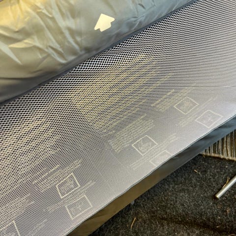 Emma matkasänky. Hyvä käytetty kunto, sisällä säilytetty. Moitteena verkossa kaksi pientä reikää, katso kuvat. Meillä ei haitannut käyttöä.