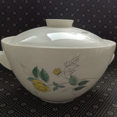 Kulhon kulmassa pieni kopsu, joka ei näy juurikaan ylhäältäpäin (katso kuvat). Huomioitu hinnassa. Halkaisija n. 24 cm a korkeus n. 6 cm.