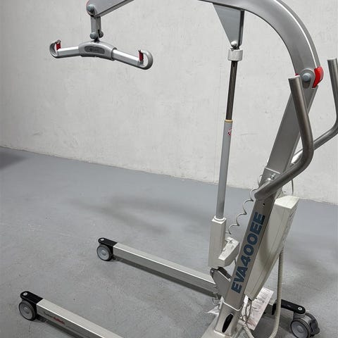 Carina 355EE henkilönostin. Vaaka + nostovälineitä. Laite toimii ok. Service valo palaa, koska käyttötunnit yli. Punainen kangas vyö ei kuulu nostimen mukaan.