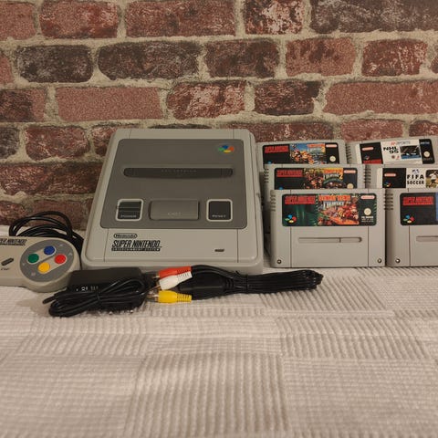 Snes konsolipaketti. Sisältää Super Mario World -pelin ja yhden ohjaimen. Alkuperäisessä pakkauksessa.