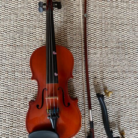 56 cm pitkä Shim Violin -viulu. Ollut erinomainen harrasteviulu, joka soi kauniisti. Ei moitittavaa pintakulumisten ohella. Kuvassa näkyvät osat mukaan. Mieluiten nouto.