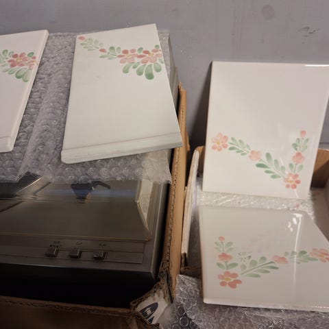 Saloni ceramica. Kukallisia vanhoja seinä laattoja noin 2 laatikkoa
