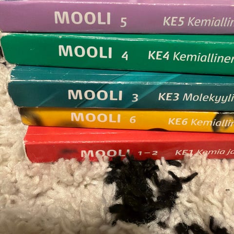 Lukion kirjoja esim. pääsykokeisiin lukemiseen :). Mooli 1 & 2 vanhempia ja niissä on joitakin merkintöjä. Kertaus kirjassa ei merkintöjä ja 4&5 aivan uusia.
