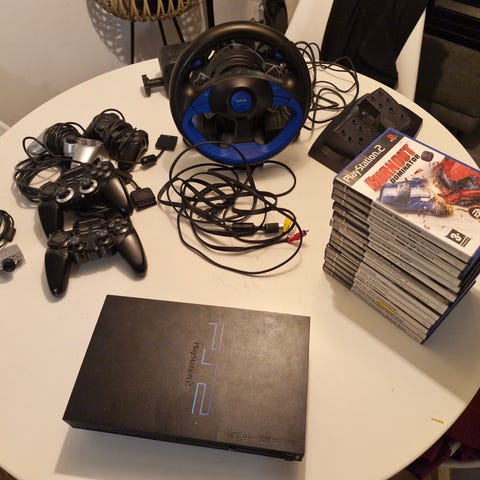 Annetaan Ps2, ohjaimet, muistikortti, kaapeleita. Pitäisi olla toimivia, nouto.