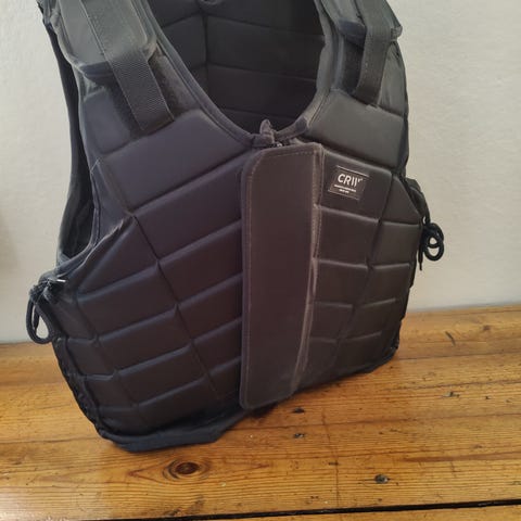Equiline turvaliivi musta, valmistettu kestävästä materiaalista. Suunniteltu tarjoamaan suojaa ratsastajalle. Varustettu tarrakiinnityksillä istuvuuden säätämiseksi. koko youth smalla