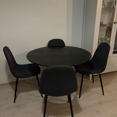 Myydään hyvännäköinen ja laadukas käytetty ruokailuryhmä, Ruokapöytä + 4 mukavaa tuolia.