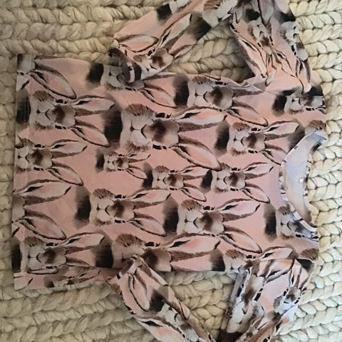 Ehjä, käytetty kunto. Kyynerpäistä väri haalistunut (ks.toka kuva) sekä tumma tahra vas.kyynerpäässä ja hihansuussa. Koko 146/152.