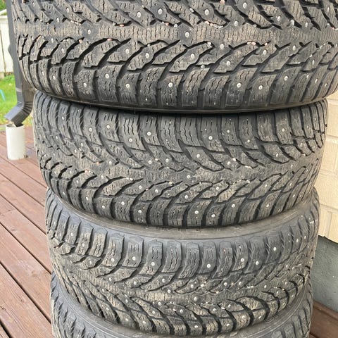 Kaksi hyvää rengasta joissa nastat tallella ja pintaa 7mm. Kaksi huonompaa 6mm pinnalla ja nastoja puuttuu sekä poikki. Paisto 2019. Hinta sama kaikille tai kahdelle paremmalle. Nouto