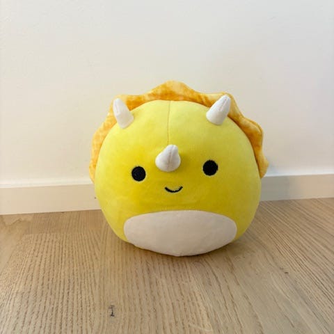 Keltainen Squishmallows dinosaurus