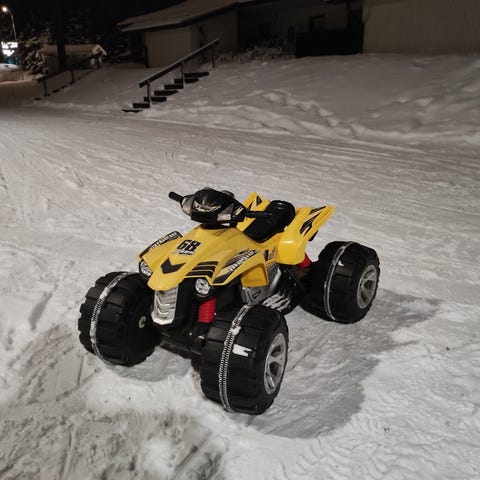 Kauko-ohjattava mönkijä. Kulkee eteen, taakse ja kääntyy myös. Pikkunapeista kuuluu erilaisia ääniä/puhetta eng. kielellä. Paristot ei mukana.
