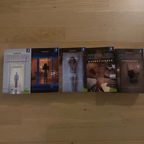 Lars Keplerin kirjasarjan neljä ensimmäistä osaa: Hypnotisoija, Tulitodistaja, Paganini ja paholainen sekä Nukkumatti. Kirjat ovat suomenkielisiä ja kuuluvat Joona Linna -sarjaan.