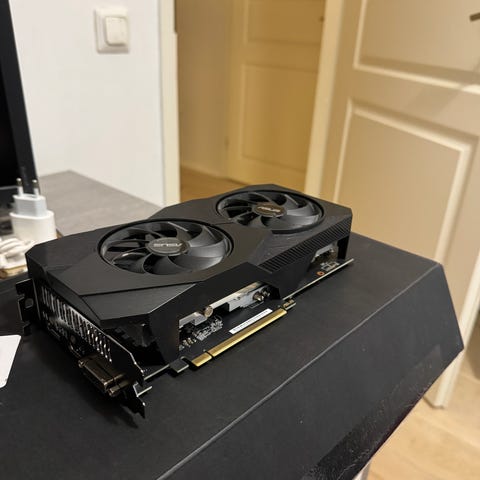NVIDIA GeForce GTX 1660 Super näytönohjain, single fan. 8 pin-virtaliitin ja 6gb VRAM.
