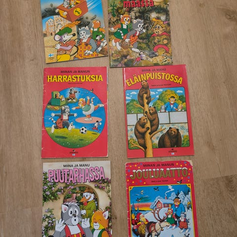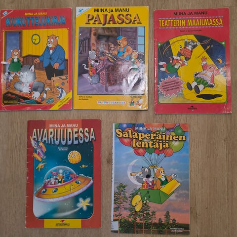 Miina ja Manu kirjoja yhdessä. Leipureina kirjaa teipattu, muut siistejä.