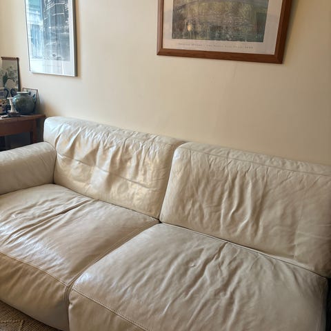 Annetaan kahdenistuttava nahkasohva. Nouto Espoosta. MMM.