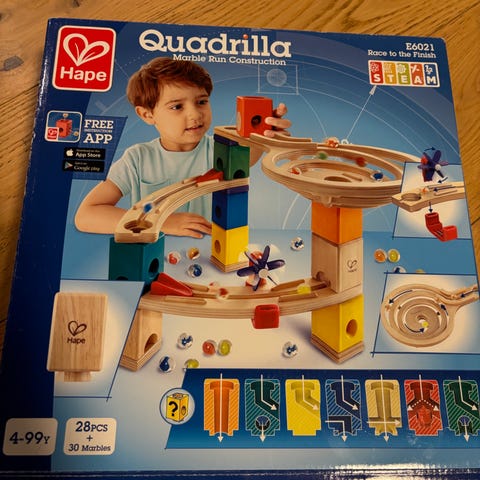 Quercetti skyrail kuularata. Ohjevihko mukana. Vihkossa ohjeet kahdelle radalle. Patterit on mukana, mutta ovat käytetyt. Testasin vain että toimii.