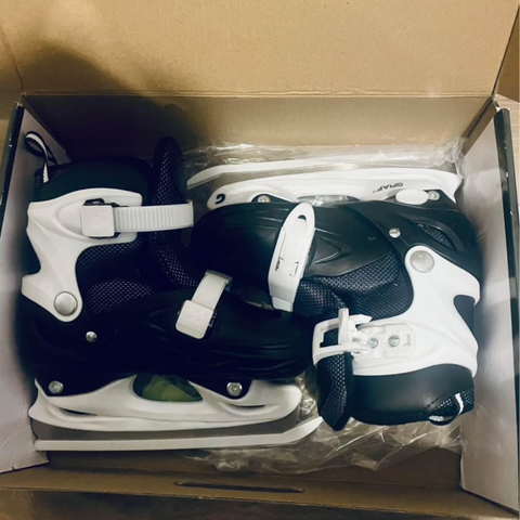 Hyvät luistimet lapselle,muutaman kerran luisteltu viime talvena ja terät teroitettu viime keväänä. Kunto erittäin hyvä, ei juurikaan mitään jälkiä käytöstä.