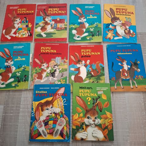 Pupu tupuna kirjat yhdessä. Pirkko Koskimies. Luettuja ja ikä näkyy näissä. Osaa teipattu.