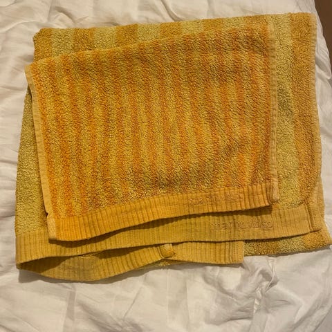Marimekko raidallinen punainen/pinkki pyyhe valmistettu puuvillasta. Koko 46x90 cm.