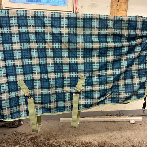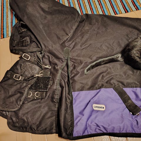 Tälle syksyä ostettu ja pidetty, ehjä sadeloimi. Juuri pesty loimenpesuaineella. Koko 145.