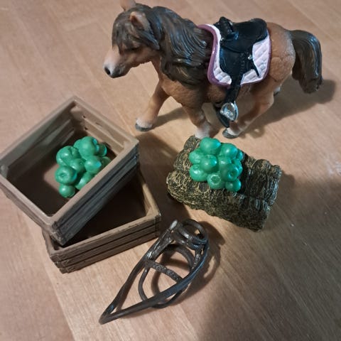 Schleich hevonen ja tarvikkeita -setti. Kaikkea kivaa pikkutavaraa..
