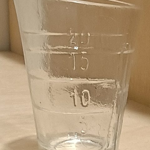 Vanha , lasinen mittakannu, tilavuus 1 litra. Läpinäkyvä materiaali, kahvalla varustettu. Soveltuu nesteiden ja kuiva-aineiden mittaamiseen keittiössä.