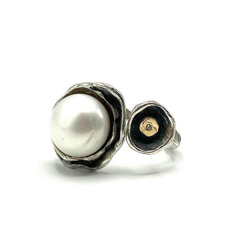 Tämä sormus on peräisin rajoitetusta 'Mosaic'-kokoelmasta, jonka on suunnitellut ja toteuttanut Alexandra Steinforth (Ale jewels), koru- ja taidealan lisensioitu ammattilainen. Kyseessä on täysin käsityönä valmistettu ja käsin veistetty kappale, joka yhdistää teksturoidun hopean kauniiseen 9 mm:n ametistiin ja toiseen osaan, jossa on 18 karaatin kultaisia yksityiskohtia. Se on nykyaikainen muotoilu, joka sopii mihin tahansa tilaisuuteen ja on ainutlaatuinen ja poikkeuksellinen taiteellisen koru- ja jalokiviharrastajan mielestä. Etusormen leveys on enintään 11 mm, ja sormus on säädettävissä, peruskoko 17.