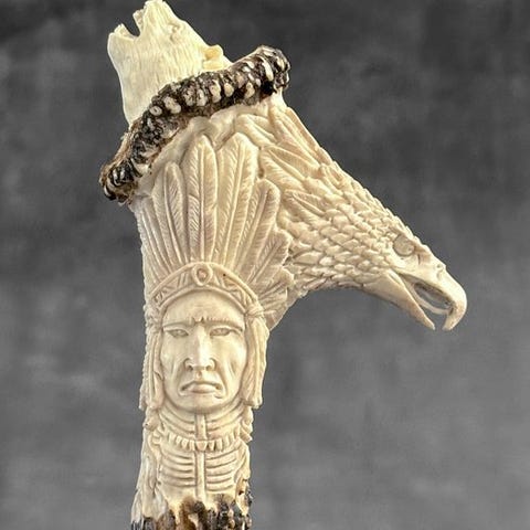 Hienosti veistetty kuoleman enkeli, tehty hirven sarvista, räätälöidyllä jalustalla.