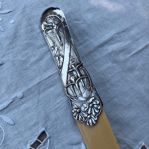 4 kpl Uchatius Bronze jugend-veitsiä 1900-luvun alusta. Terä pronssia. Kunto muuten hyvä, mutta yhdestä vaitsestä lähtenyt pieni pala varresta. Käyttökelpoiset.