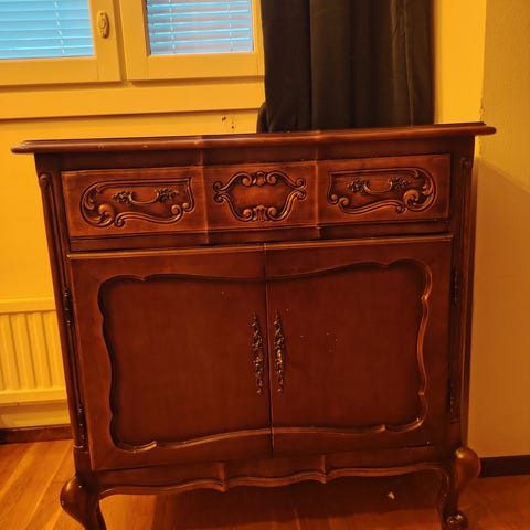 Hyväkuntoinen vaalean ruskea kaappi sekä pienempi hylly myynnissä Nokian Koskenmäen alueella. Vain nouto.
