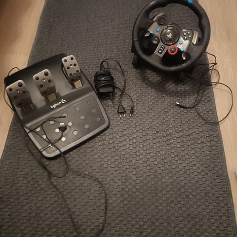 Logitech G29 -ohjauspyörä, polkimet ja vaihdekeppi erinomaisessa kunnossa. Käytetty jonkin aikaa kaupunkiliikenteen ajosimulaattoreissa ennen ajokokeita.