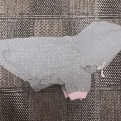 Erittäin hyväkuntoinen huppari pienelle koiralle. Valjaiden kohdalle leikattu pieni viilto.