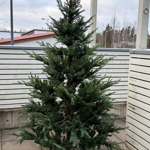 Muutama oksa on huonosti kiinni, mutta saa aseteltua. Koristeiden kanssa oleva kuva on viime joululta ja ilman koristeita on äsken otettu (siinä oksat ovat säilytysasennossa).