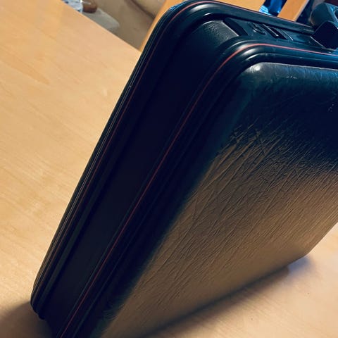 Myydään tosi tyylikäs asiakirjasalkku. Sisällä iso säilytystila + iso tasku, joka menee vetskarilla kiinni. Mitat 37cmx26cmx8cm.