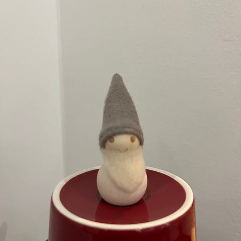 Aarikka vanha isojalkainen tonttu. Hyväkuntoinen. Hintalapun jämiä jalkapohjassa.