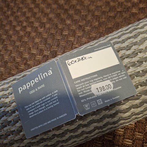 Myydään Pappelinan Edit-matto sävyssä granit. Myyn, koska matto on liian lyhyt nykyiseen keittiööni. Matto on erittäin hyväkuntoinen, en löydä siitä moitittavaa. Edullisin hinta minkä löysin tälle netissä on 266€.