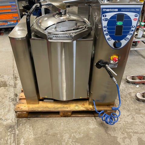 Kaksi kappaletta höyrykeittopatoja. Valmistaja Metos, malli Viking 8 CS, tilavuus 80 litraa, kallistettava höyrykeittopata, sähkö 380 V / 3-vaihe, teho 12 kW, valmistusvuosi 1988, materiaali ruostumatonta terästä. Sisäpinnat siistit normaalilla käytön jäljellä, kallistusmekanismi, painemittari ja vesihana paikallaan, ei näkyviä puutteita. Myydään sellaisena kuin on ilman toimintatakuuta. Soveltuu ammattikeittiöön, jatkokäyttöön, kunnostettavaksi tai varaosiksi. Hinta 800 € / kpl tai 1 600 € / molemmat.