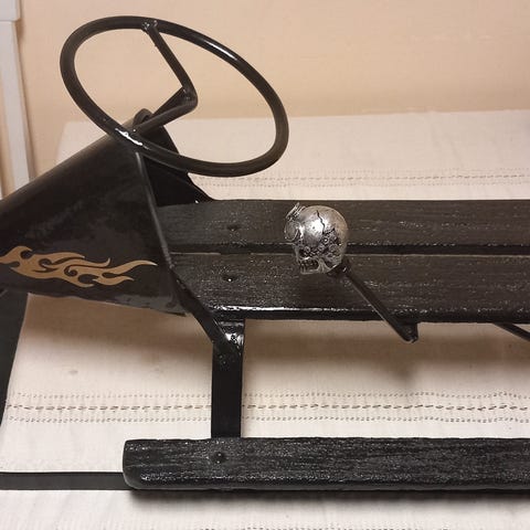 Rakkaudella kunnossa pidetty crossi mallinen rattikelkka.