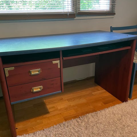 Myydään laadukas ja näppärä työpöytä, jossa on ulosvedettävä ja piilotettava näppäimistötaso.