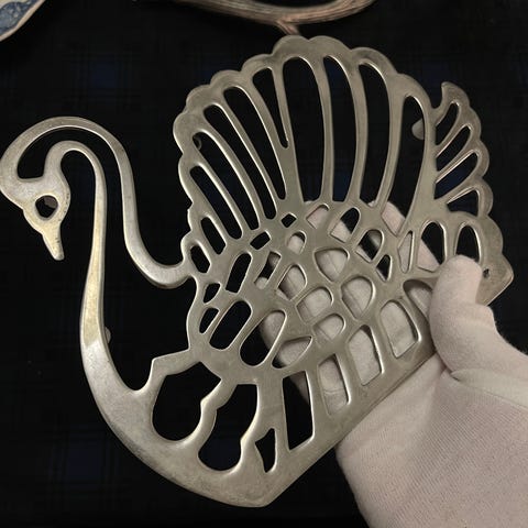 Vintage Godinger hopeoitu messinkinen joutsen servettiteline / kirjeteline