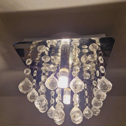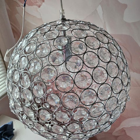 Erittäin tyylikäs kattovalaisin, tuo tyylikästä säihkettä huoneeseen! Toinen valaisimista alkaa olemaan palanut loppuun, mutta niitähän saa kaupasta lisää.