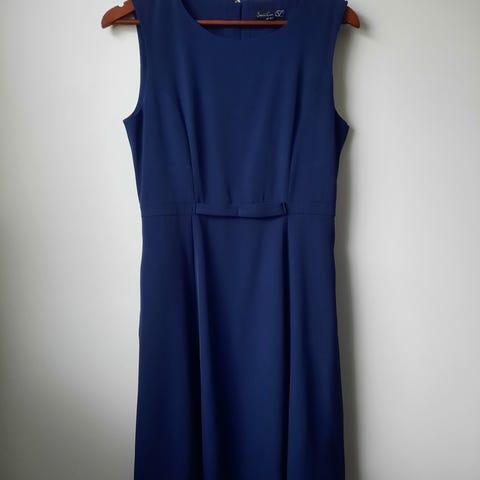 Kuvan mukainen mekko, mielyttävä pehmeää ohutta neulekangasta. Joustaa hyvin ja on myös ihan lämmin talvella vaikka ei paksu ole. Koko 38-40. Pituus olkap.-helma n.97cm. polveen. Muutama x käyt. Ei mitään vikaa tai käytön jälkeä.