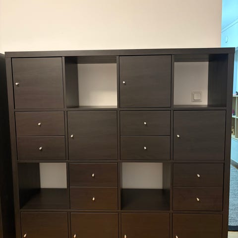Annetaan lastenhuoneessa pidetty Ikean musta kallax hylly kahdella pehmeällä säilytyslaatikolla. Ihan hyvä kunto.