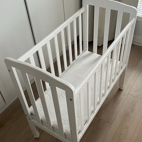 Myytävänä pieni pinnasänky pyörillä. Sänky sopii hyvin noin 0-6 kuukauden ikäiselle. Sängyn kaksi pyörää saa lukkoon. Pinnasänky kohtuu hyväkuntoinen. Reunoista maalipinta jonkin verran kulunut, näkyy kuvissa.
