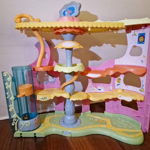 Myydään ehjä ja iso Littlest Pet Shop leikkitalo ja kuvassa näkyvät tavarat sekä hahmot.