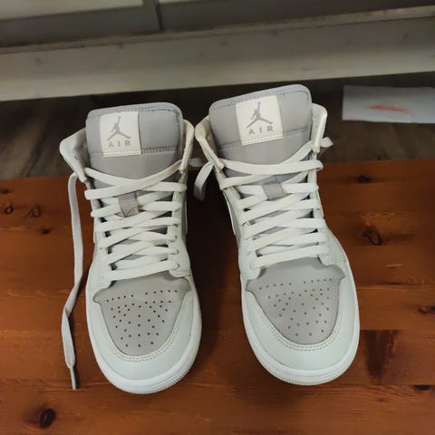 Air Jordan Tennarit kengät, koko 39. Kengät ovat musta-harmaat ja sisältävät valkoisia yksityiskohtia. Malli soveltuu vapaa-ajan käyttöön.