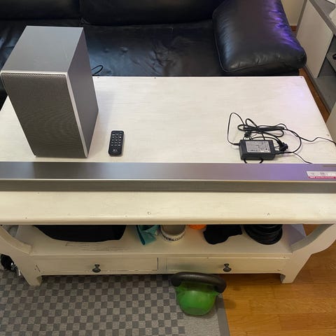 Subbarissa jotain mätää, ei yhdistä enkä osaa korjata. Soundbar toimii hyvin ja siistissä kunnossa. Kaukosäädin ja virtajohdot mukaan.