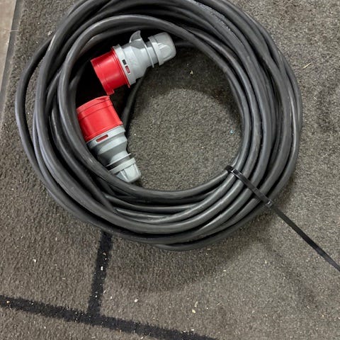 30 metrin pituinen ja 5-napainen voimajatkojohto. 16 A. Kaapeli 5 x 2,5 H07RN-F. Kotelointiluokka IP44.