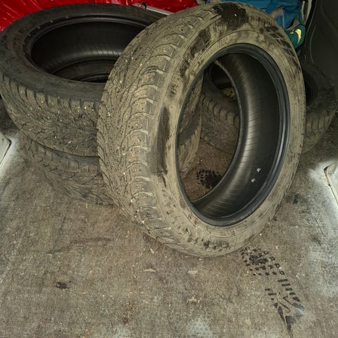 4kpl hakkapeliitta r3 kitkarenkaita, tuoreella paistovuodella dot:4221. Pintaa noin 5mm. Tasaisesti kuluneet kuten kuvassa näkyy. Siitä nopealle lopputalveksi kitkat alle. Tinkaa siitä rengassarja itelles. Myydään kaikki 4 kpl yhteishintaan 60e.